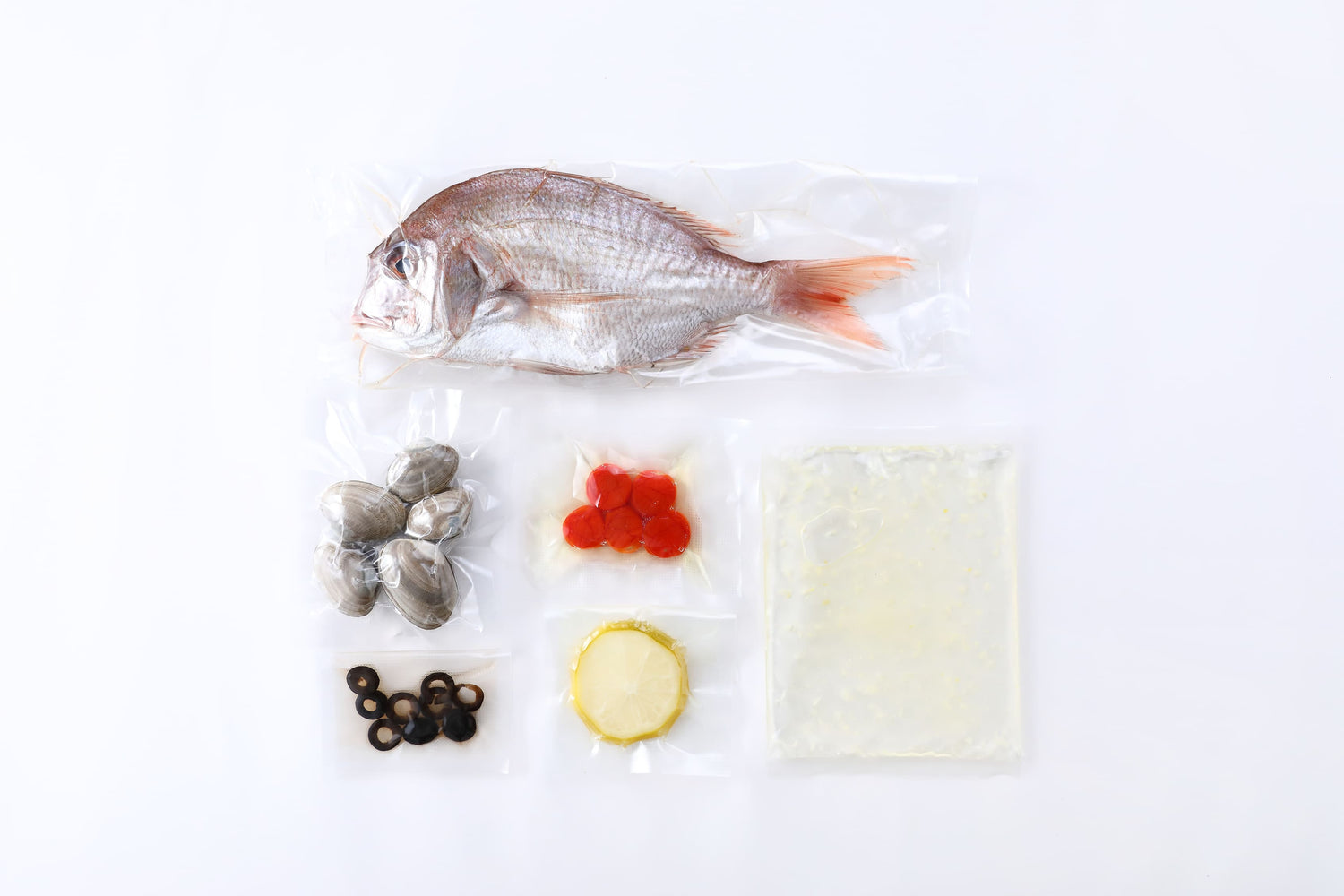 「まるごと鯛のアクアパッツァ」は、冷凍された鯛とその他の厳選素材がセットになっているので、解凍して軽く焼いて煮込むだけで、本格的なアクアパッツァが完成します。特別な調理技術は必要ないので、どなたでも手軽に本格料理を楽しめます。